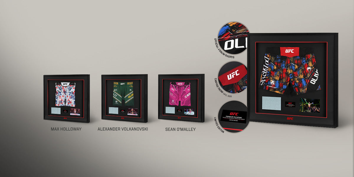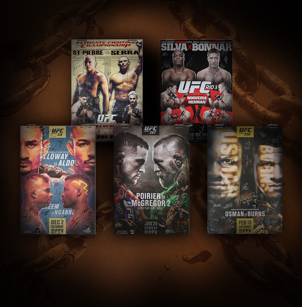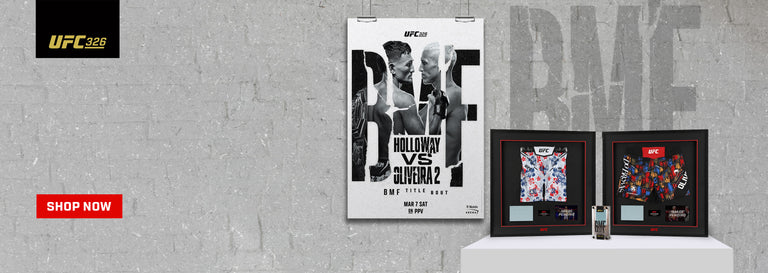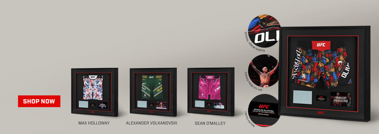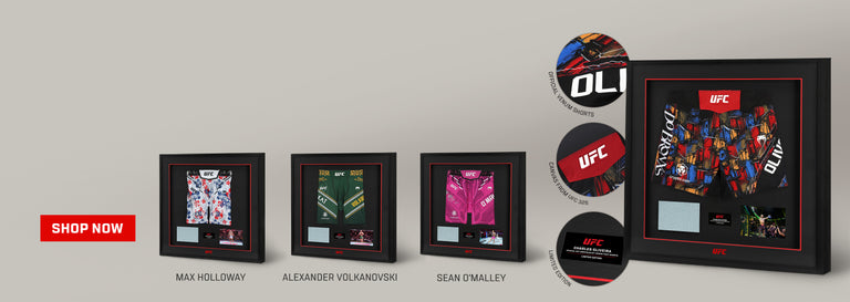 Partnered with UFC, we’re the only store for exclusively signed, fight-worn memorabilia from the Octagon. The ultimate destination for UFC fans.
