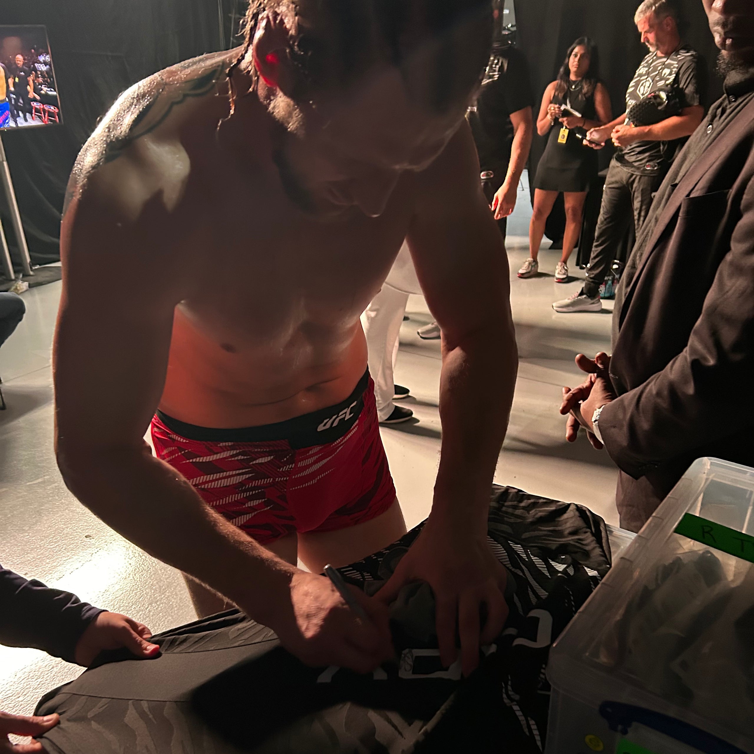 This is your chance to take home a genuine piece of UFC history with this fight worn jersey, worn and signed by Alexander Volkov. The jersey was worn by Volkov during the UFC 321: Aspinall vs Gane event, held on Saturday October 25, 2025, at the Etihad Arena in Abu Dhabi, United Arab Emirates.