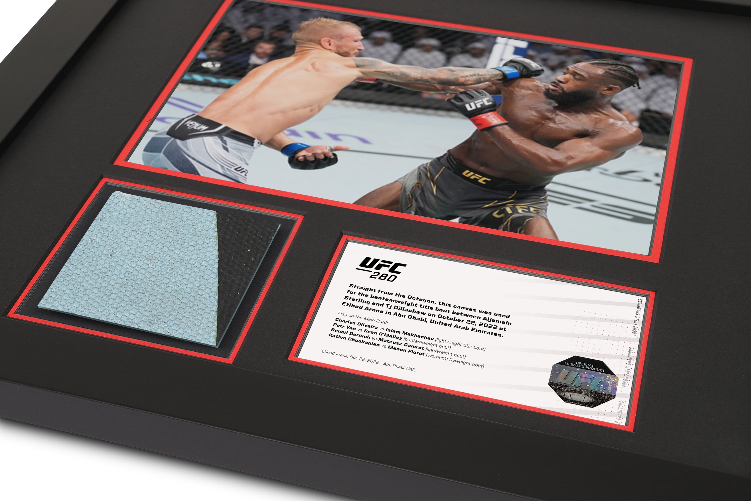 This is your chance to take home a genuine piece of UFC history with this UFC 280: Oliveira vs Makhachev canvas & photo. This product includes a piece of the very canvas fought on during the event, accompanied by a photo from the co-main event bout. UFC 280: Oliveira vs Makhachev took place on Saturday...