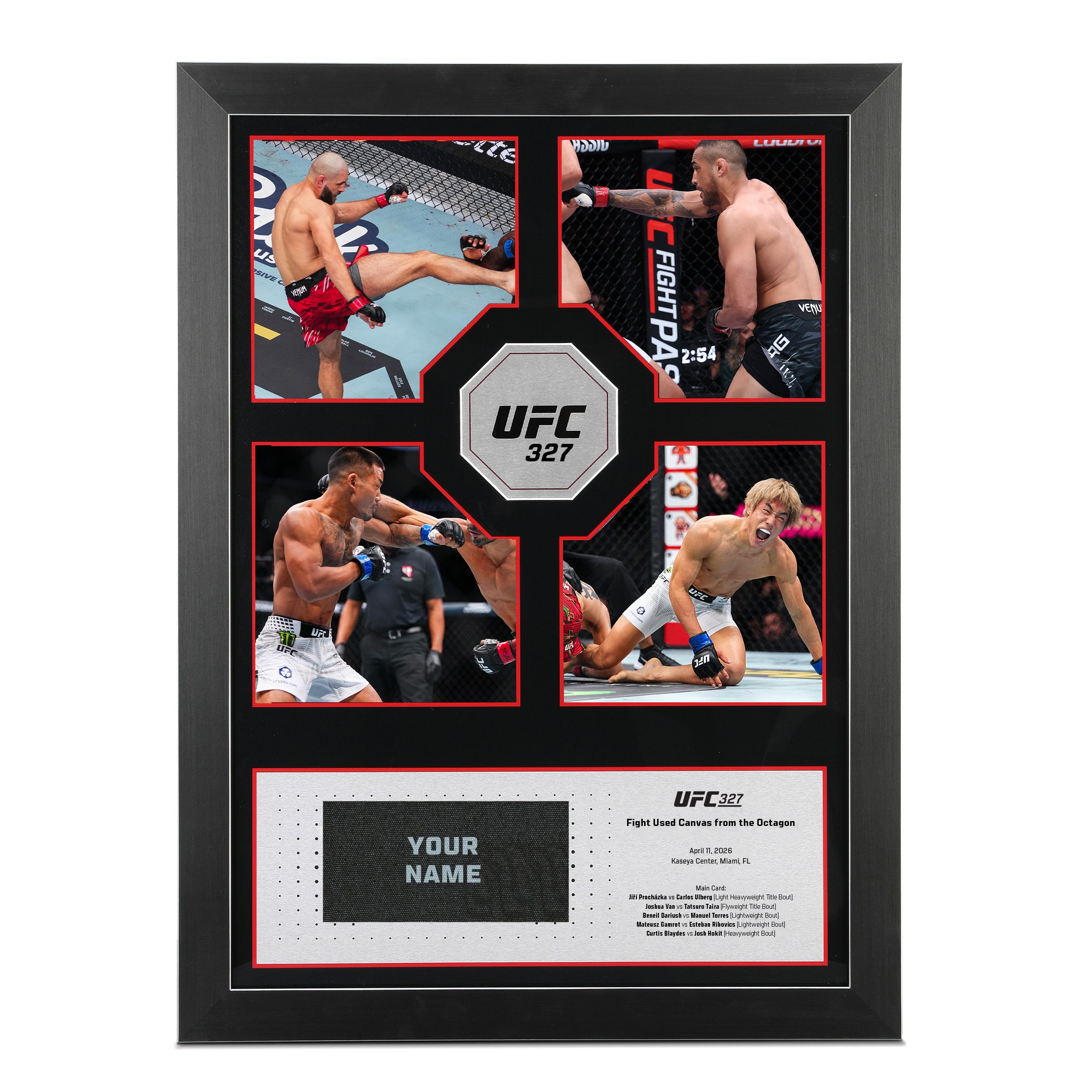 UFC fans have the opportunity to be a part of every moment inside the Octagon by securing your name on the canvas at UFC 327: Procházka vs Ulberg. Secure your spot, then watch as your favourite fighter competes above your name, then receive your very own personalised piece of UFC history.