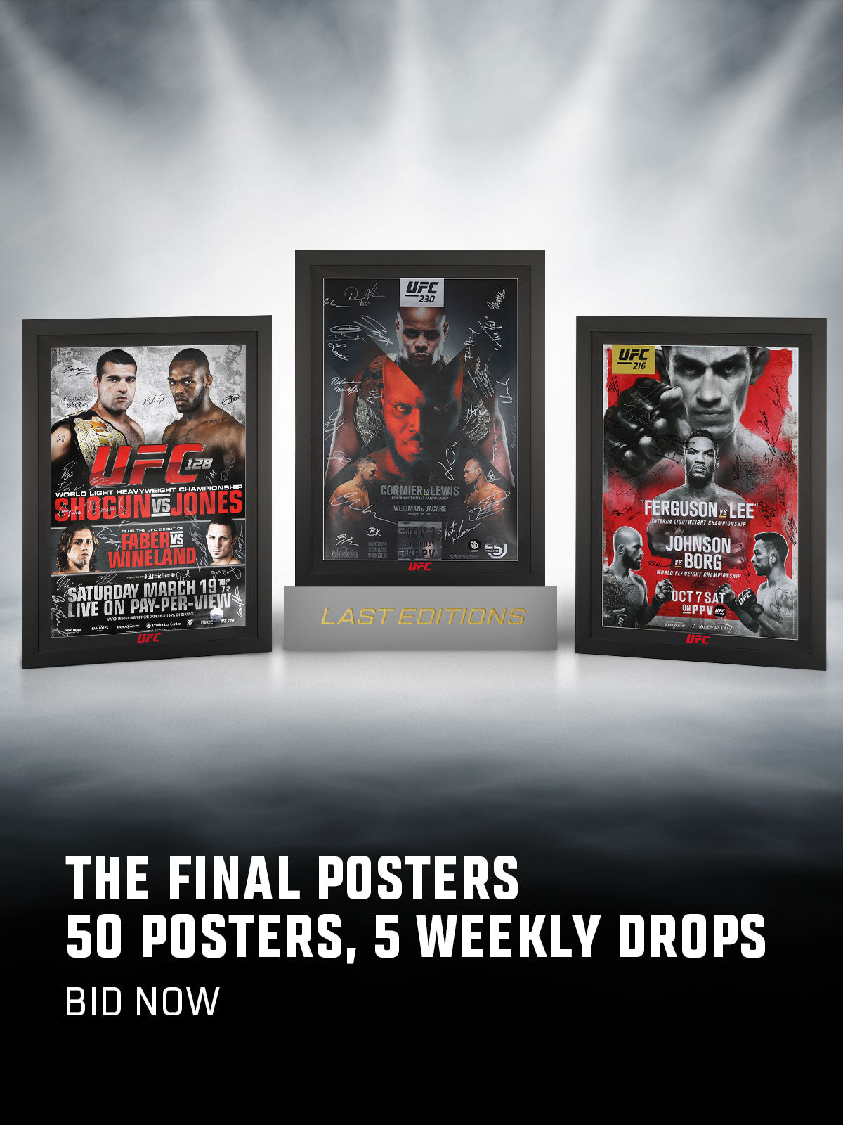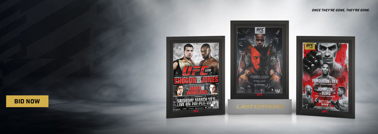 Featuring exclusive fight worn and event used memorabilia from UFC’s most recent events and Fight Nights. From iconic battles in the Octagon to unforgettable moments in UFC history, this is your chance to own a piece of the action.