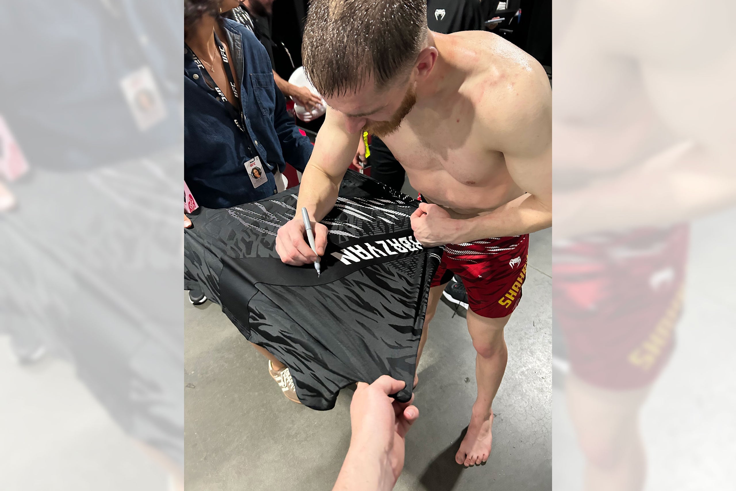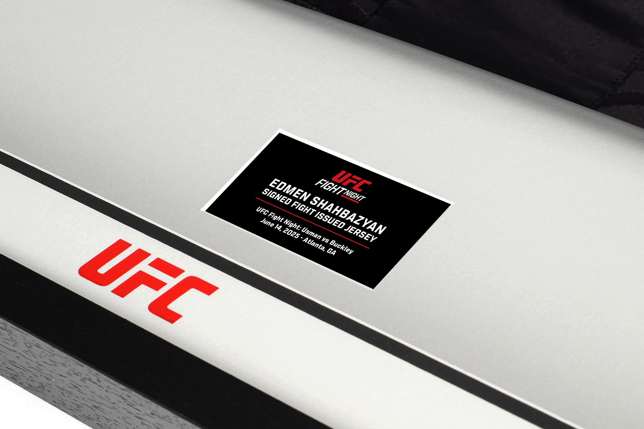 This is your chance to take home a genuine piece of UFC history with this fight issued jersey, worn and signed by Edmen Shahbazyan. The jersey was worn by Shahbazyan during the UFC Fight Night: Usman vs Buckley event, held on Saturday June 14, 2025, at the State Farm Arena in Atlanta, Georgia.