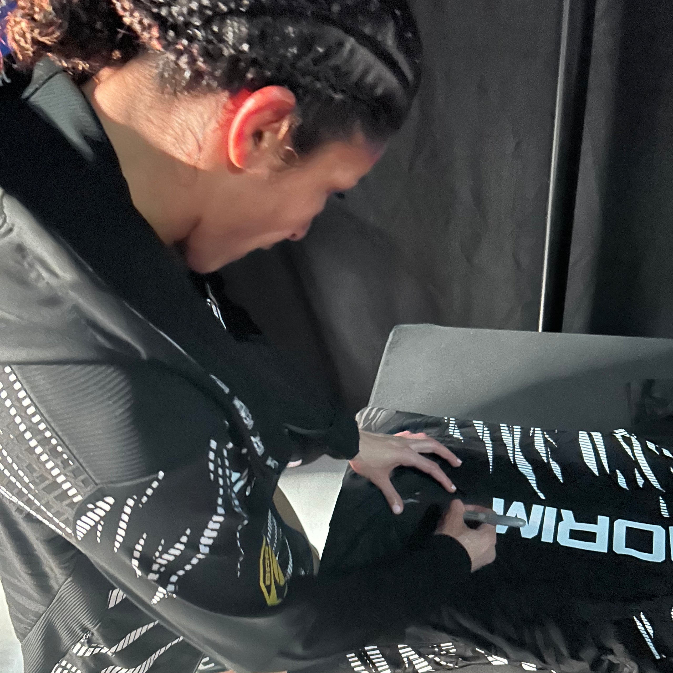This is your chance to take home a genuine piece of UFC history with this fight worn jersey, worn and signed by Jaqueline Amorim. The jersey was worn by Amorim during the UFC 321: Aspinall vs Gane event, held on Saturday October 25, 2025, at the Etihad Arena in Abu Dhabi, United Arab Emirates.