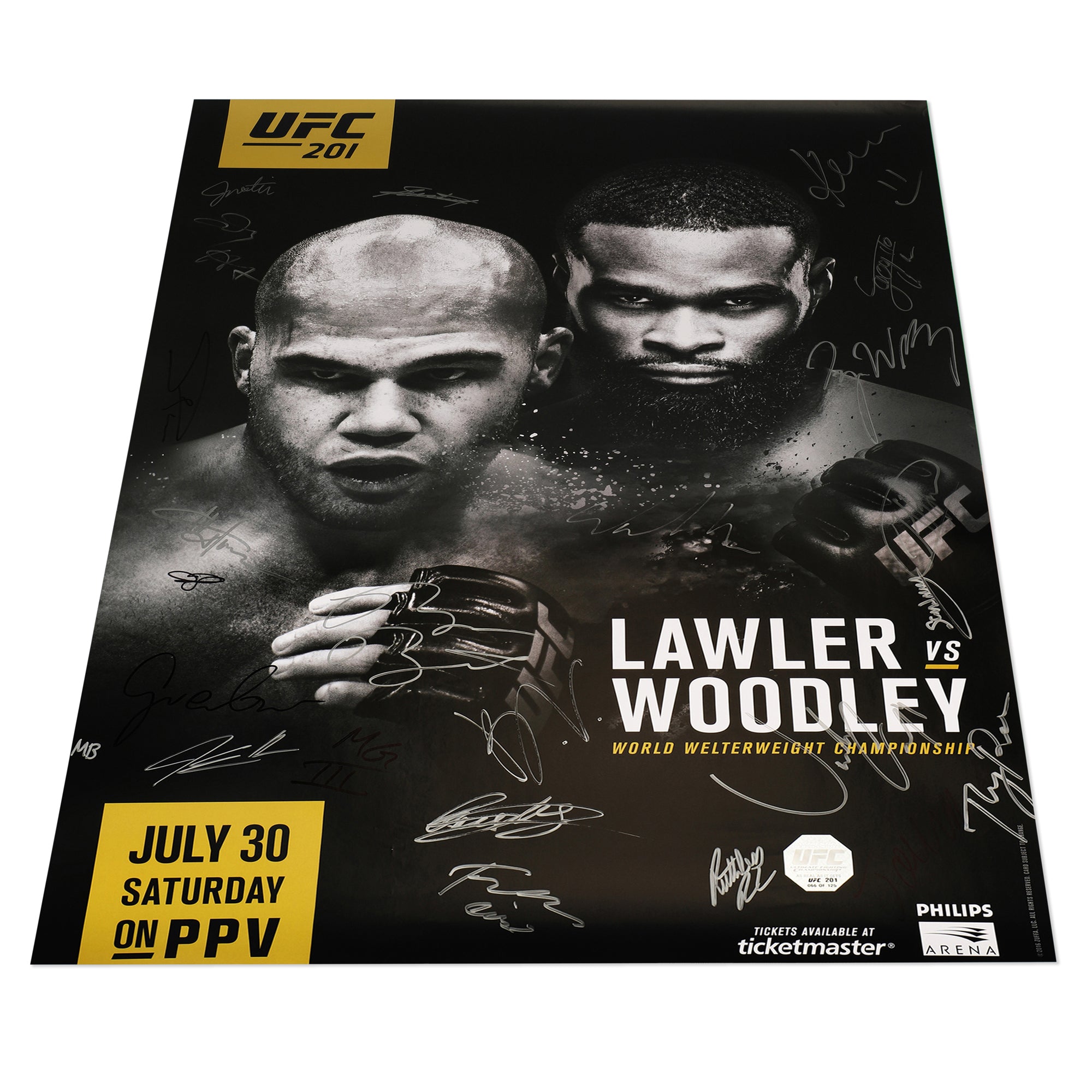 This is your chance to take home a genuine piece of UFC history with this autographed poster from the UFC 201: Lawler vs Woodley event. This poster has been signed by every athlete who competed on the card and could be the perfect addition to your collection.