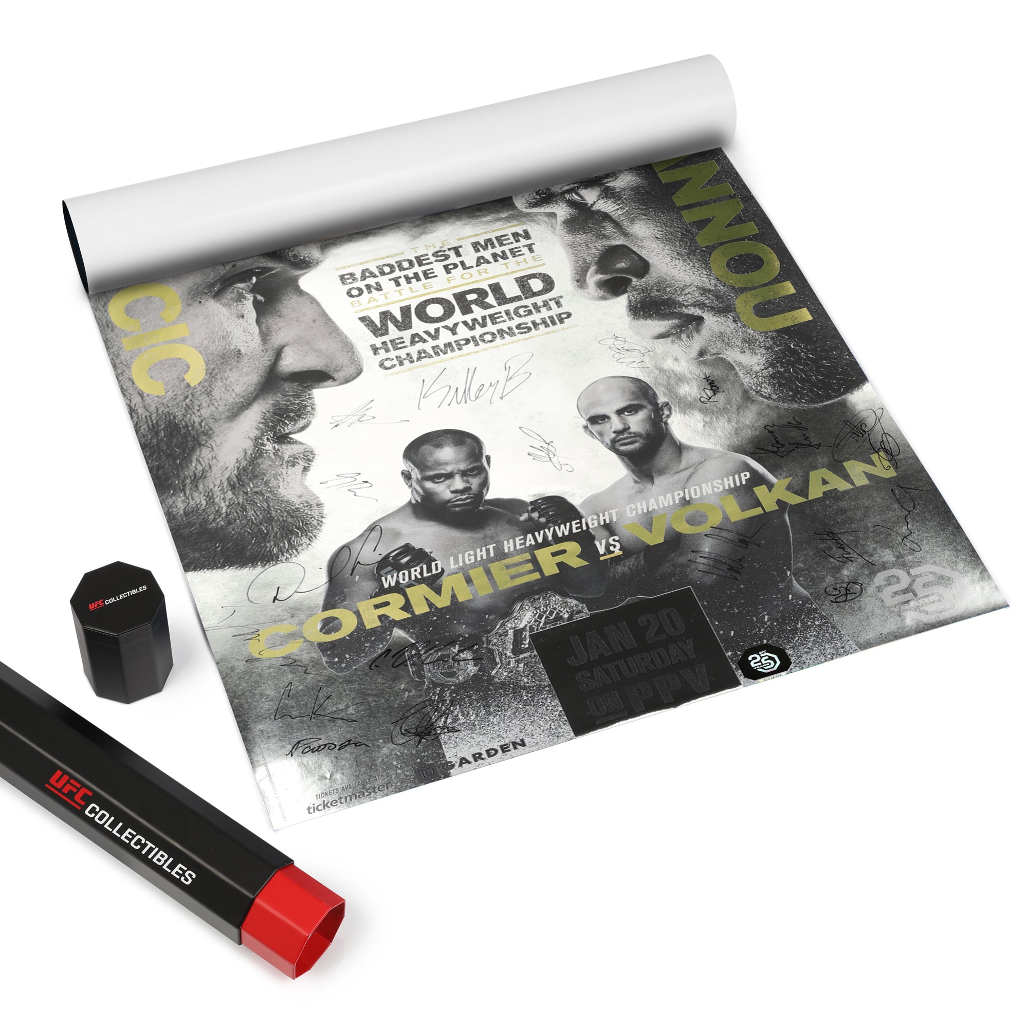 This poster has been signed by every athlete who competed on the main and preliminary card, featuring names such as, Daniel Cormier, Calvin Kattar, and Islam Makhachev.