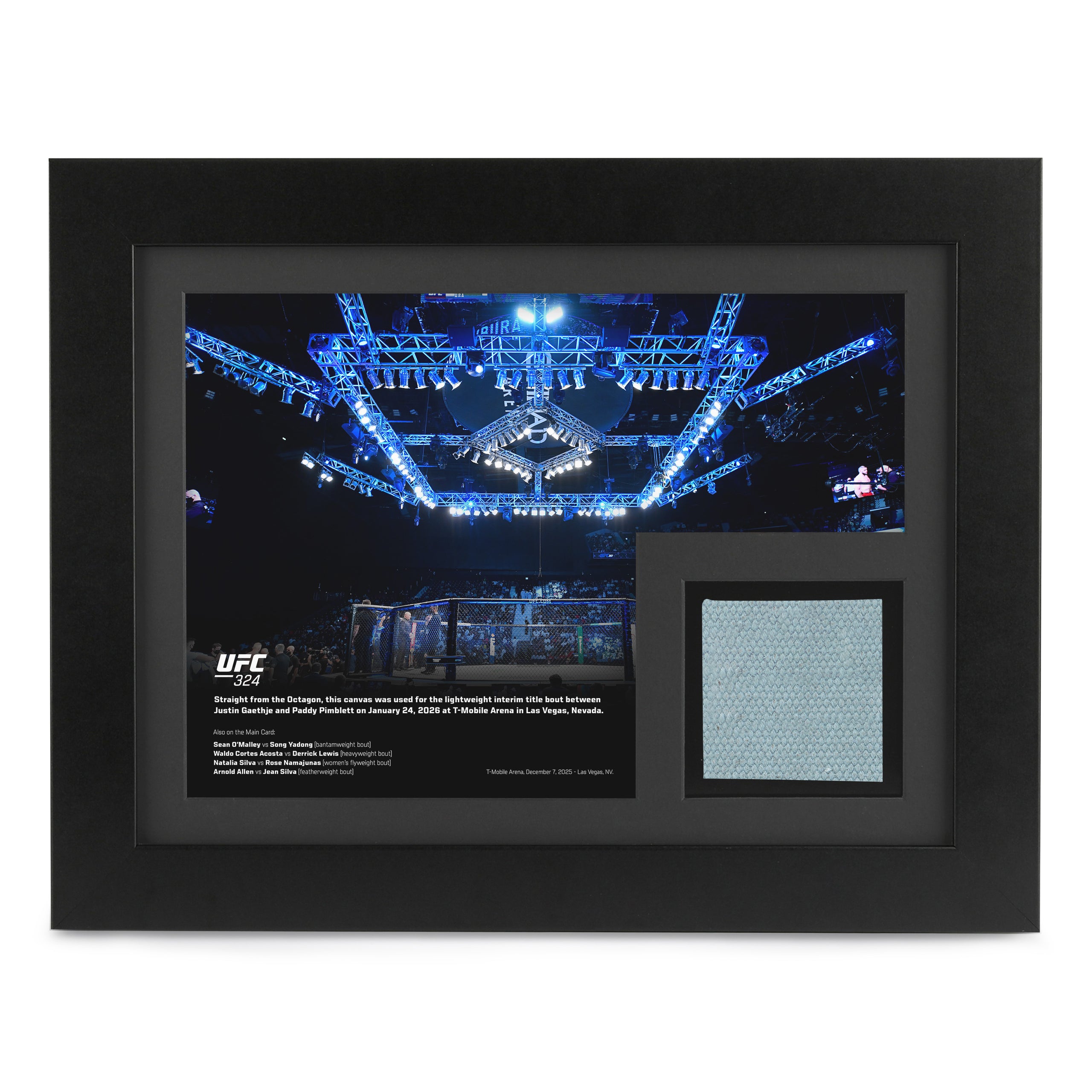 This is your chance to take home a genuine piece of UFC history with canvas & photo from the UFC 324: Gaethje vs Pimblett event. This product will include a piece of the very canvas fought on during the event, accompanied by a photo from the main event bout.