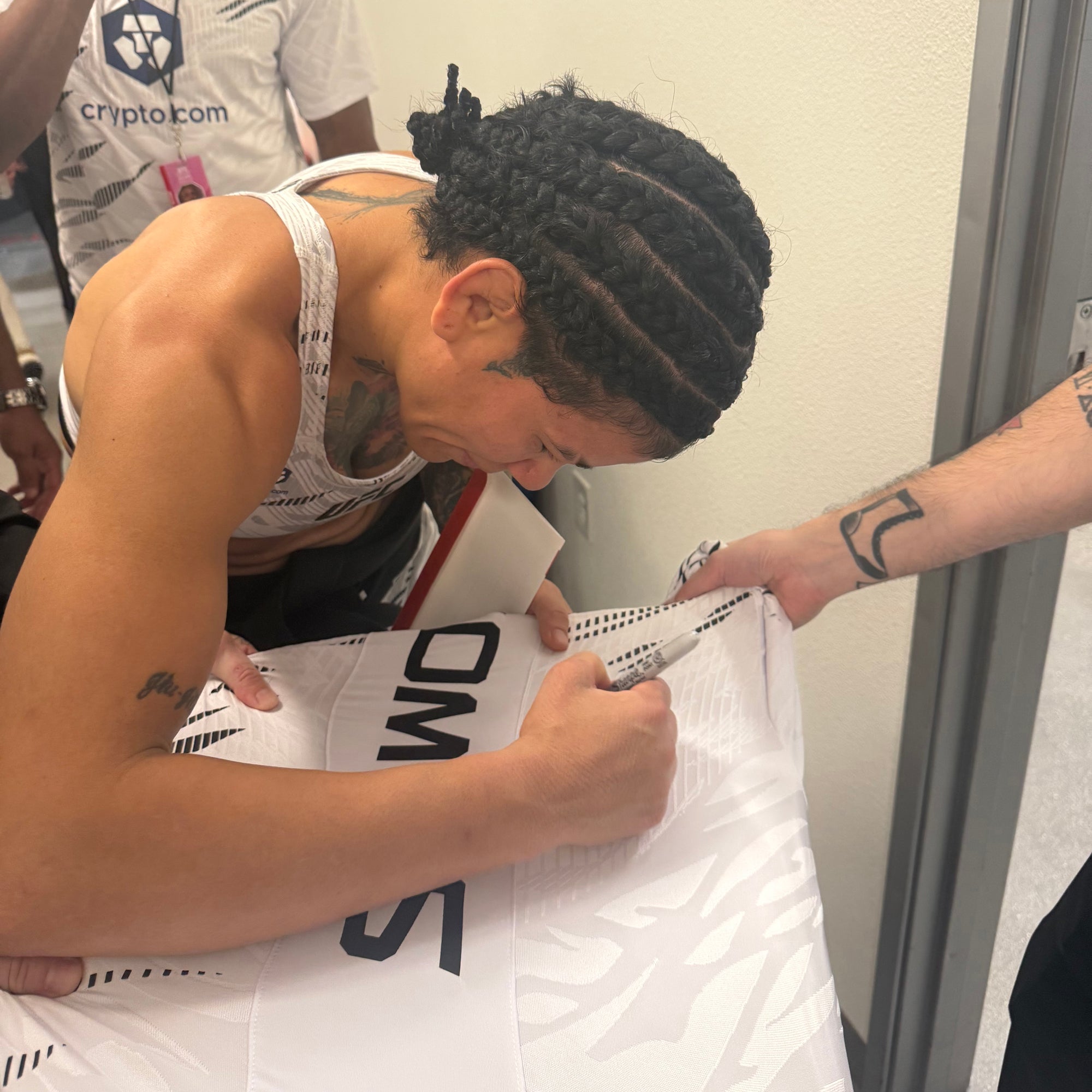 As Denise Gomes made the infamous walkout from the changing room to the Octagon, she was adorned with this very jersey. The Brazilian fighter went on to impress again with a dominant three round performance which earned her the unanimous decision win.