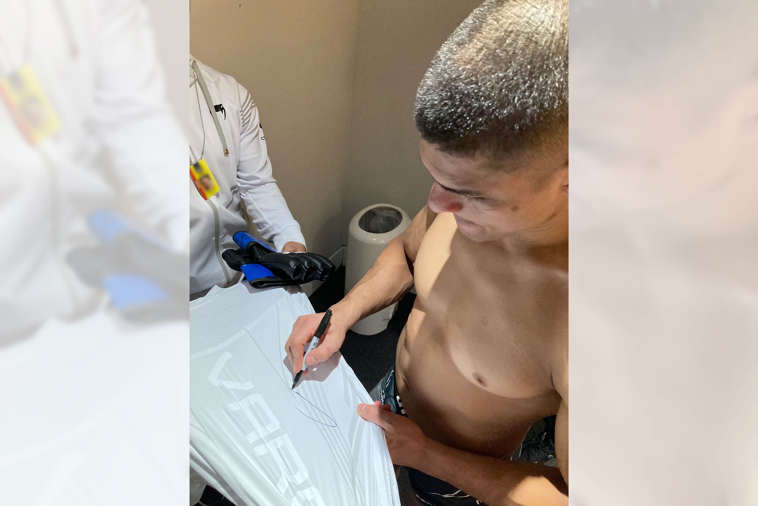As Rodrigo Vargas made the infamous walkout from the changing room to the Octagon, he was adorned with this very jersey. However, it wasn't meant to be as Vargas was defeated by Paddy Pimblett via rear naked choke submission.