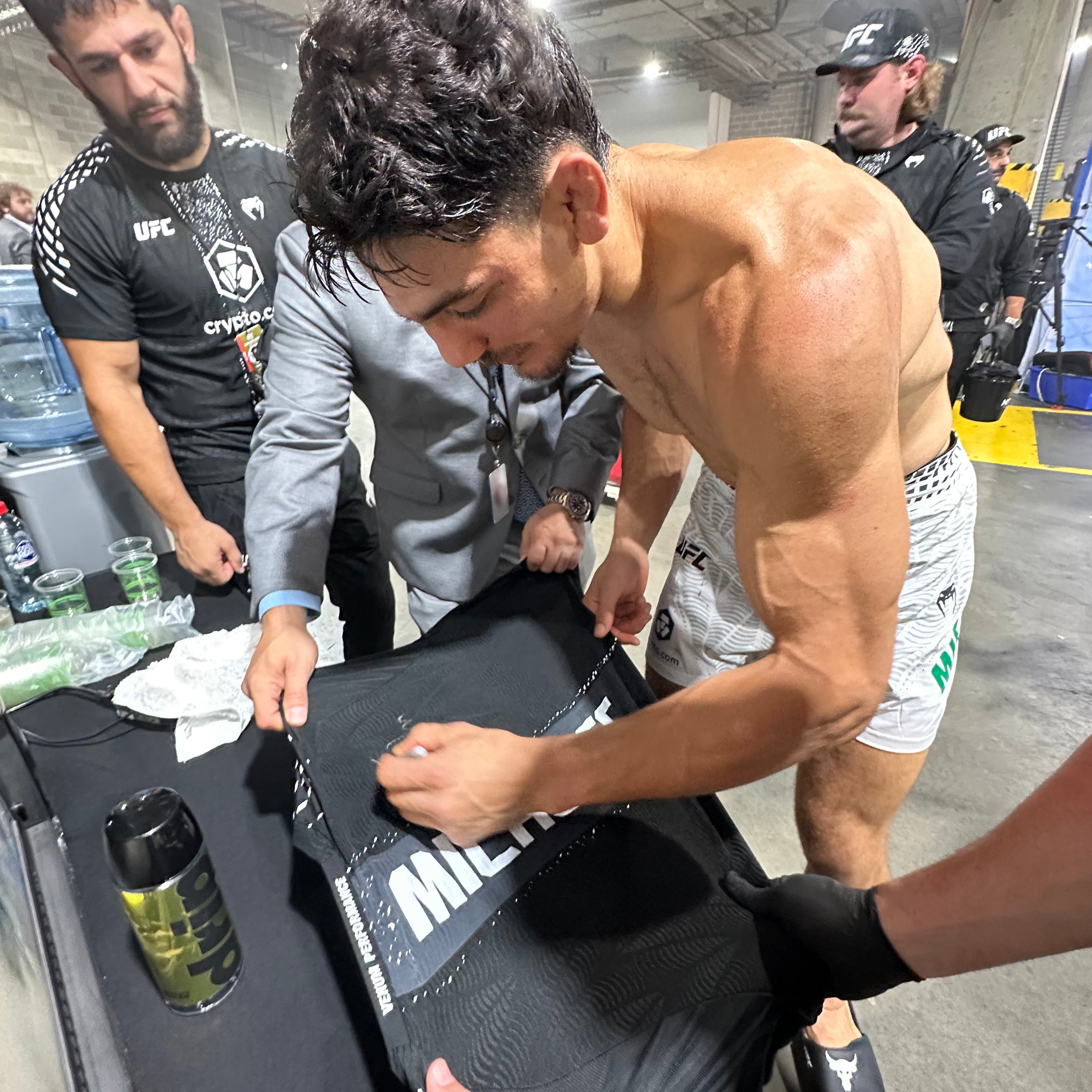 As Jonathan Micallef made the infamous walkout from the changing room to the Octagon, he was adorned with this very jersey. The Australian went on to impress the home crowd with second round submission win over Oban Elliot.