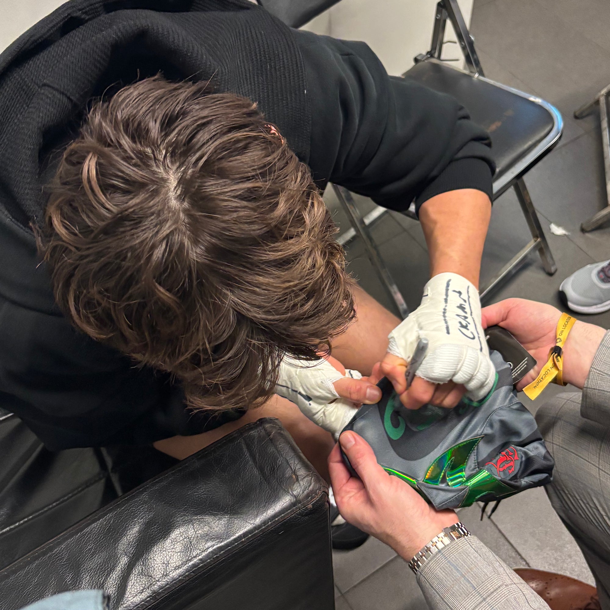 Please allow up to 6 weeks for delivery of event used and fight worn items. This is due to the items requiring sanitisation after events, and to allow for overseas shipping.