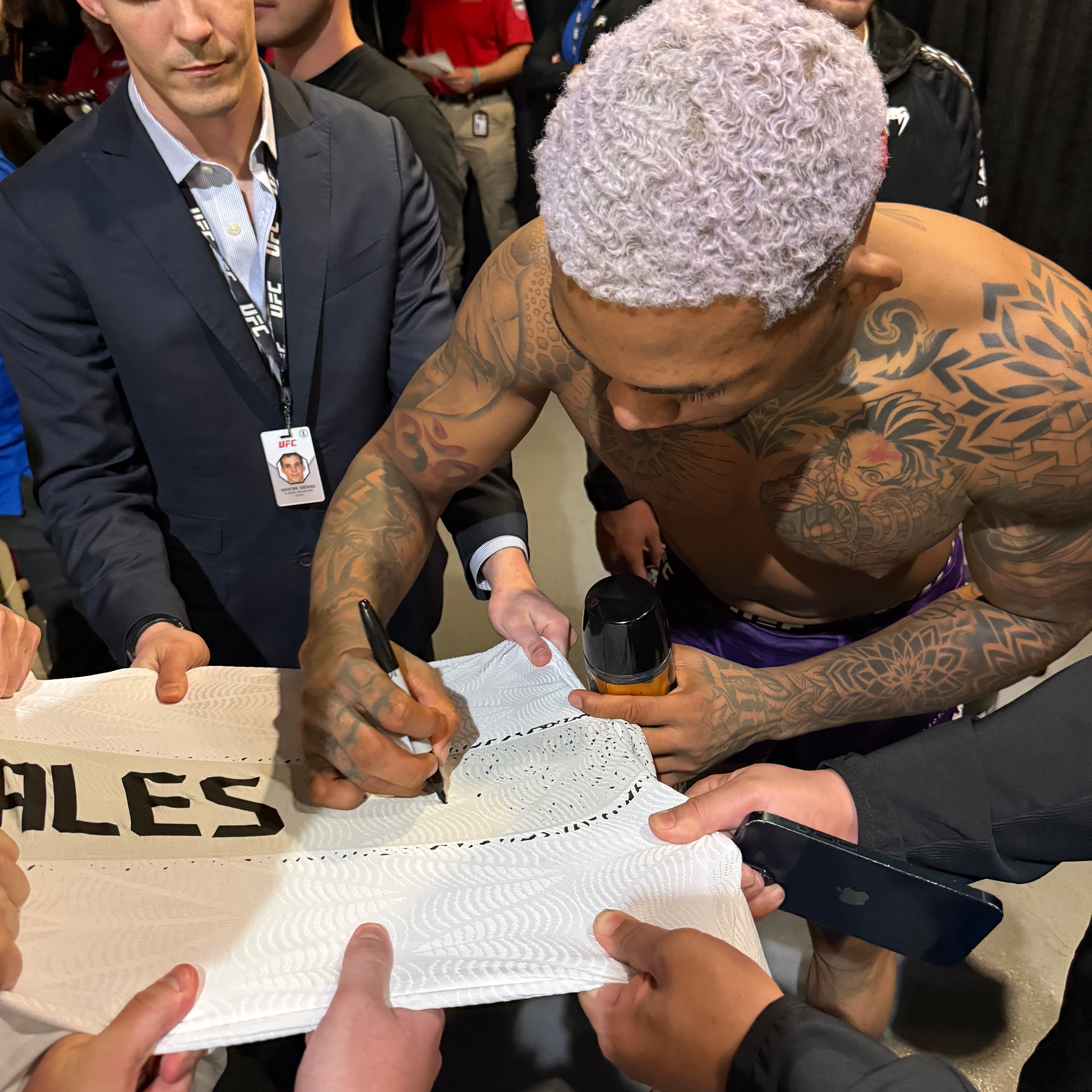 This is your chance to take home a genuine piece of UFC history with this fight worn jersey, used and signed by main card and welterweight athlete, Michael Morales. This jersey was worn by Morales for the UFC 322: Della Maddalena vs Makhachev event, held on November 15, 2025, at Madison Square Garden in New...