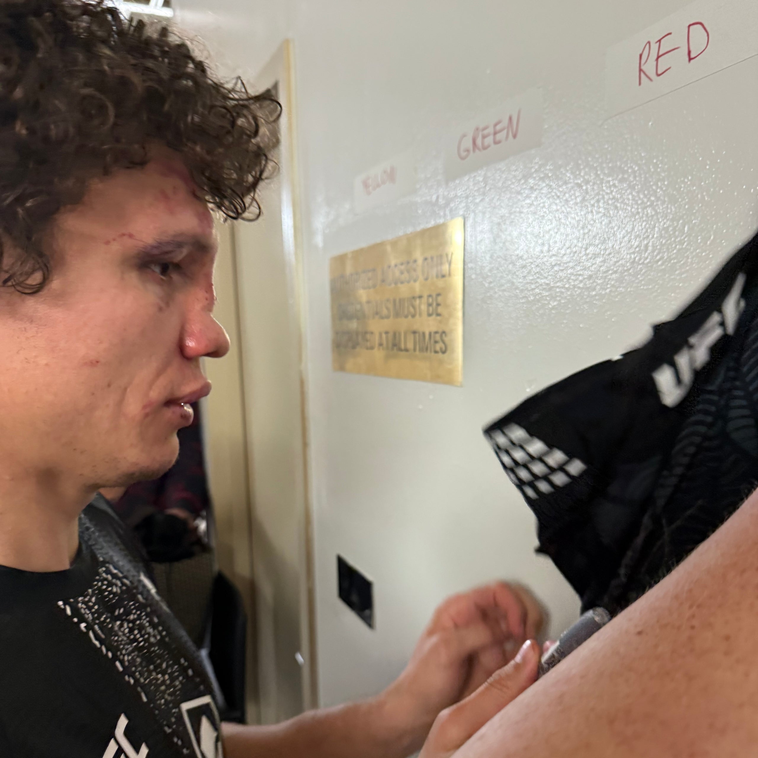 Please allow up to 6 weeks for delivery of event used and fight worn items. This is due to the items requiring sanitisation after events, and to allow for overseas shipping.