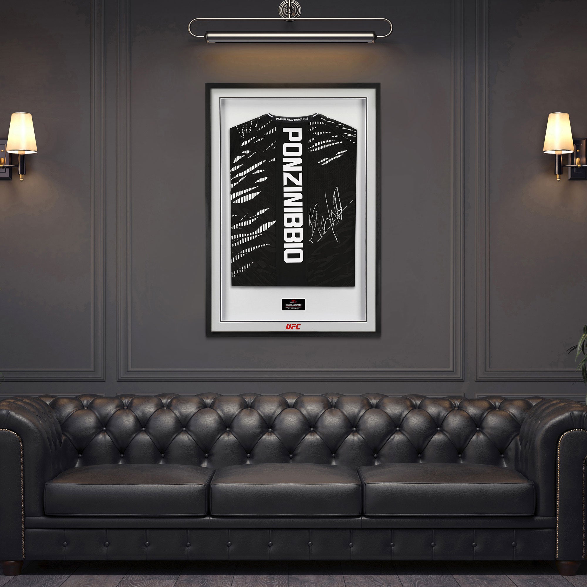 This is your chance to take home a genuine piece of UFC history with this fight issued jersey, worn and signed by Santiago Ponzinibbio. The jersey was worn by Ponzinibbio during the UFC Fight Night: Sandhagen vs Figueiredo held on Saturday May 3, 2025, at the Wells Fargo Arena in Des Moines, Iowa.   Santiago...
