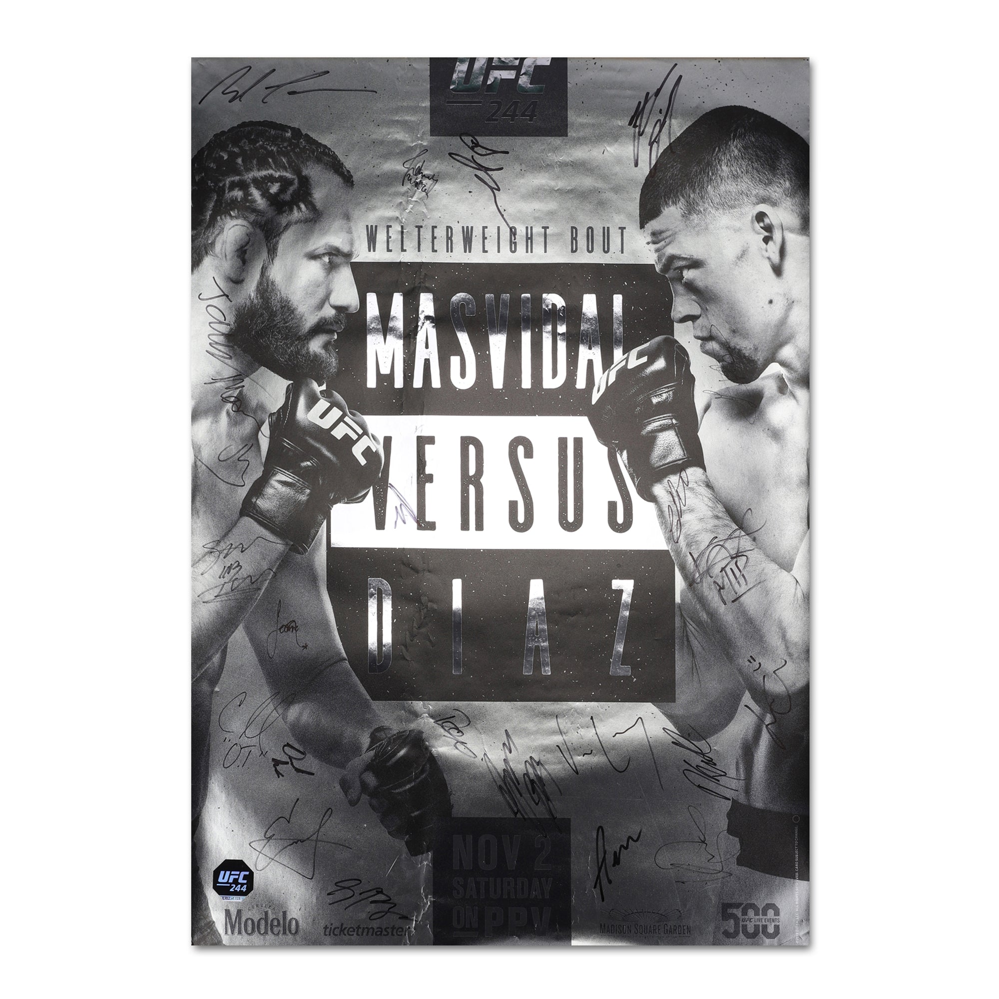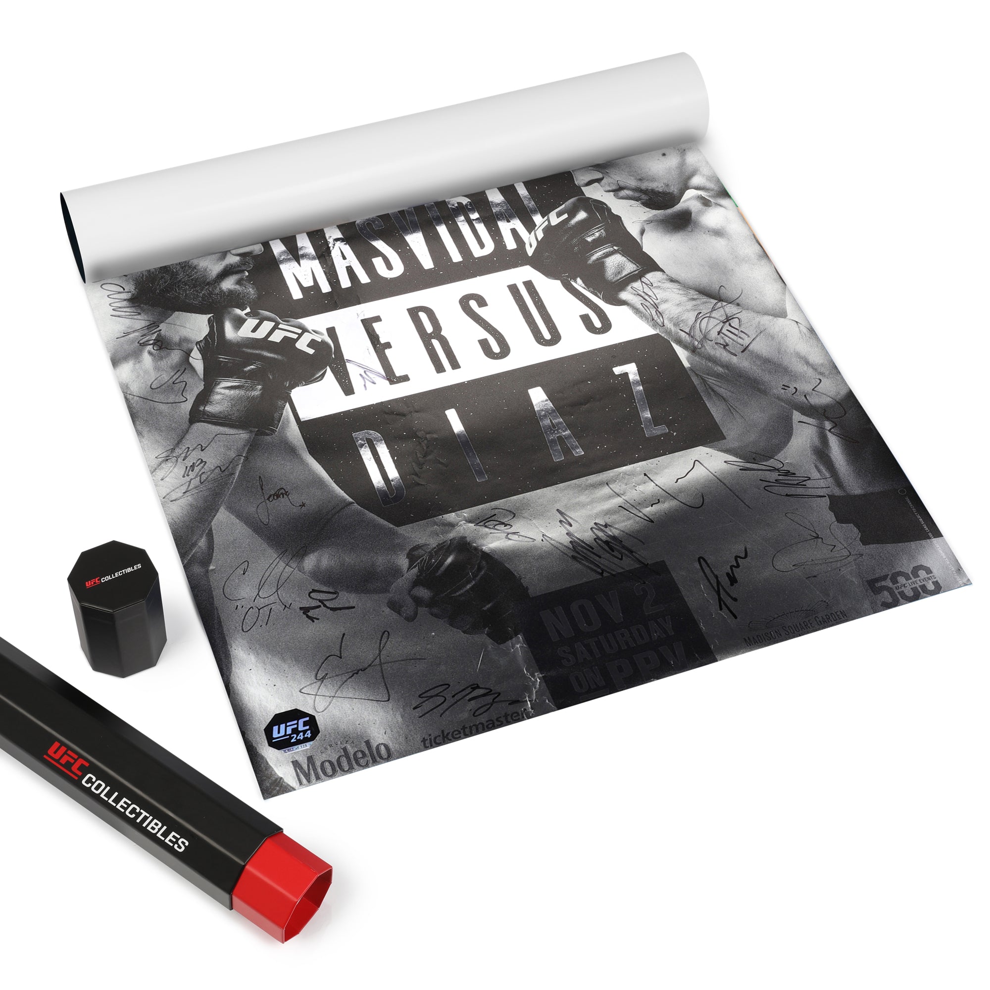 This is your chance to take home a genuine piece of UFC history with this autographed poster from the UFC 244: Masvidal vs Diaz event. This poster has been signed by every athlete who competed on the card and could be the perfect addition to your collection.  UFC 244: Masvidal vs Diaz took place on...