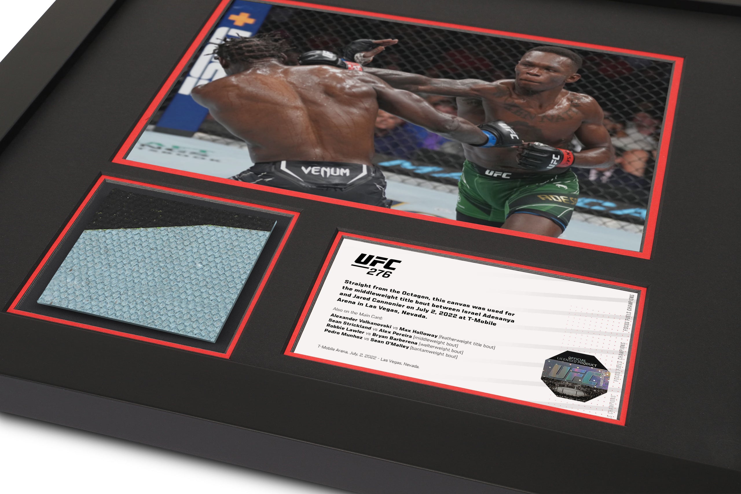 This is your chance to take home a genuine piece of UFC history with this canvas & photo from the UFC 276: Adesanya vs Cannonier event. This product will include a piece of the very canvas fought on during the event, accompanied by a photo from the main event bout.