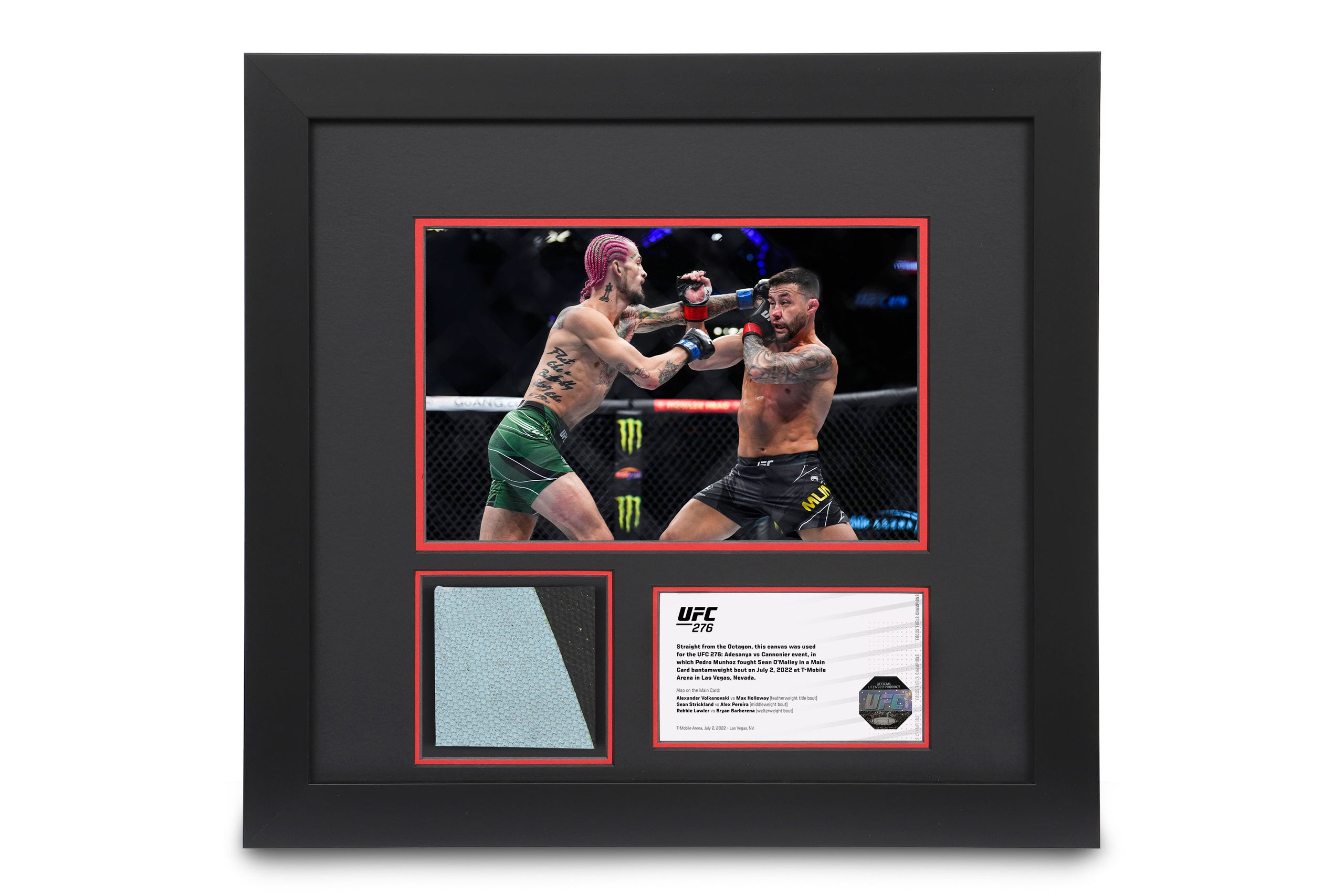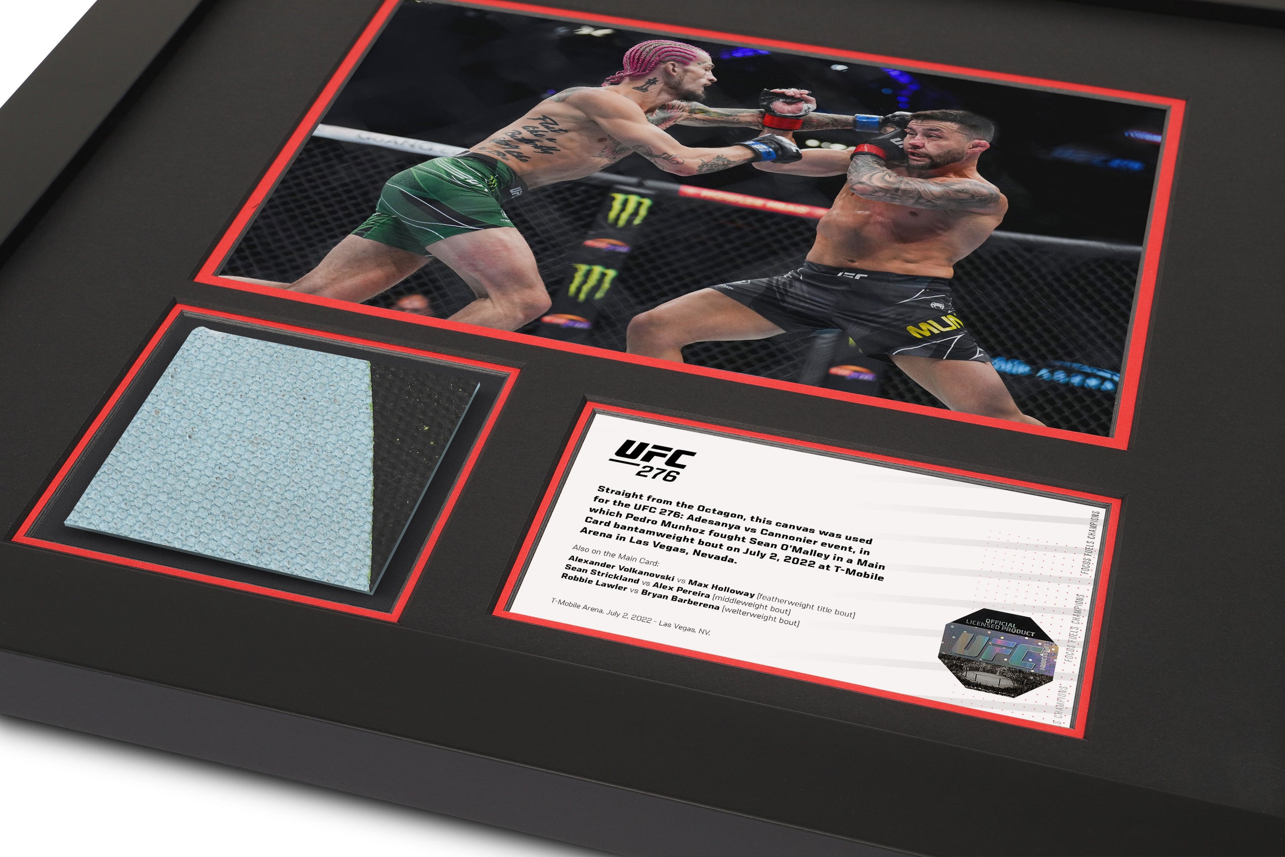 This is your chance to take home a genuine piece of UFC history with this canvas & photo from the UFC 276: Adesanya vs Cannonier event. This product will include a piece of the very canvas fought on during the event, accompanied by a photo from the Munhoz vs O'Malley bout.