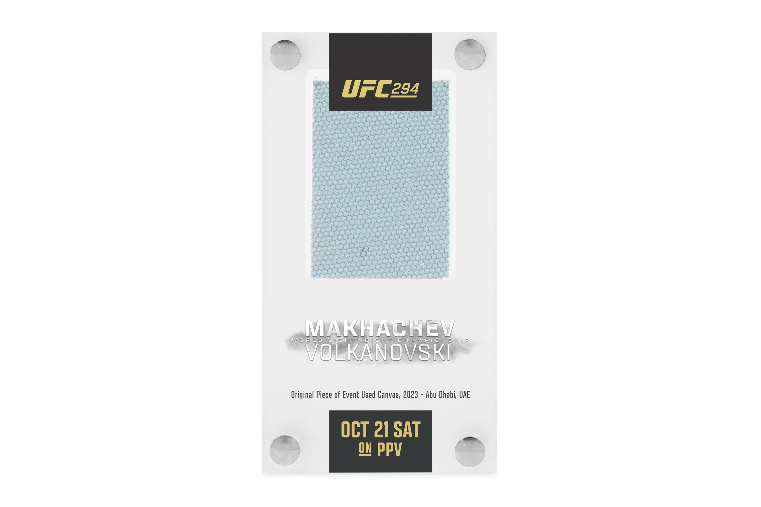 Take home a piece of UFC history with this canvas in acrylic from UFC 294 where Islam Makhachev took on Alexander Volkanovski in a lightweight championship showdown. This new canvas in acrylic piece gives you a closer feel to the Octagon than ever before, as you can now open the piece of acrylic in order to look more closely at the canvas.