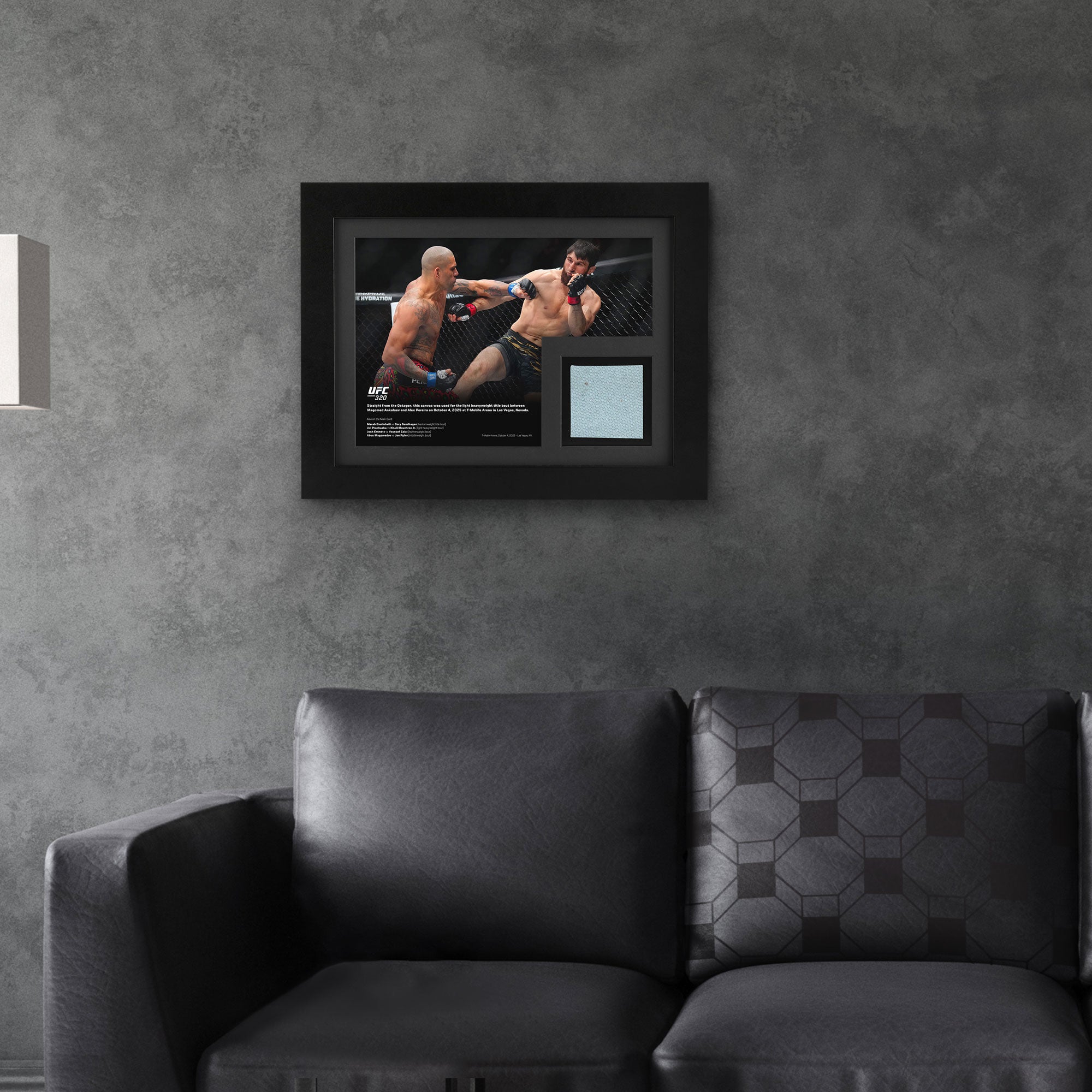 UFC fans have the opportunity to own a genuine piece of UFC history with this canvas & photo from the UFC 320: Ankalaev vs Pereira 2 event. This product will include a piece of the very canvas fought on during the event, accompanied by a photo from the main event bout.