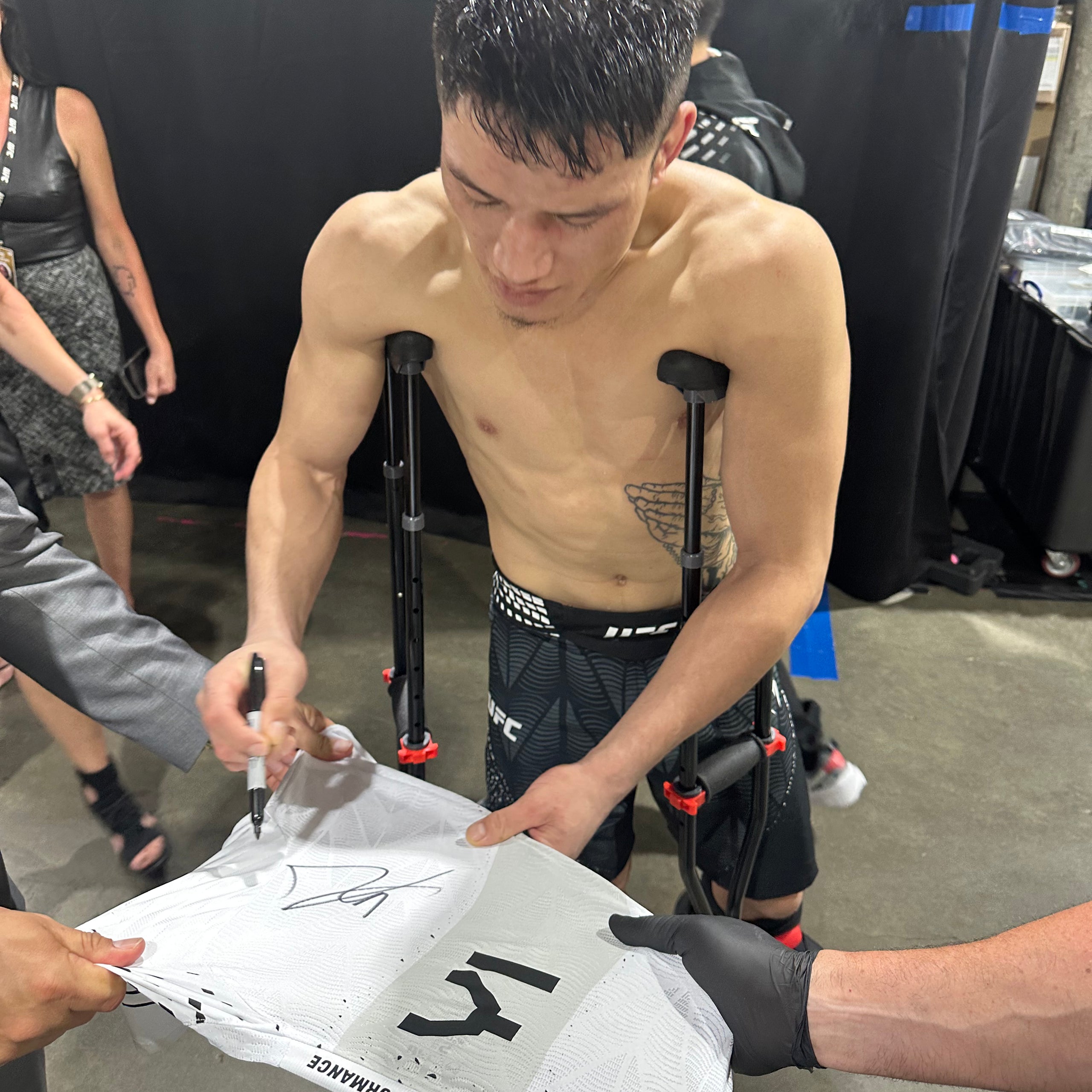 As Yi Zha made the infamous walkout from the changing room to the Octagon, he was adorned with this very jersey. Unfortunately, it was not meant to be for the Chinese fighter as he was defeated via decision.
